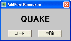 例では、Quake書体をロードし表示させています。当然 Quake.ttf が、指定フォルダになければなりません。