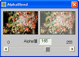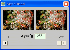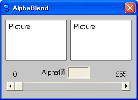 あらかじめ120×80ピクセルのBMPファイルをAlphaTest.bmpとして用意してください。