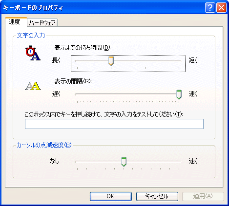 カーソルの点滅速度を確認してください。『×』クリックで元の点滅時間に戻しています。