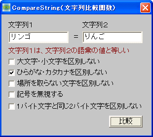 Select Case Api_CompareString(hTL, Flags(0) + Flags(1) + Flags(2) + Flags(3) + Flags(4), Str1, Len(Str1), Str2, Len(Str2))