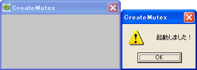 「Test Mutex」という名前のミューテックスが、あるかどうかを確認し、無ければ「Test Mutex」を作成して起動します。有る場合は、その旨メッセージを表示させ終了します。
