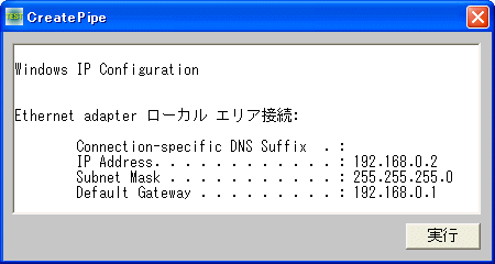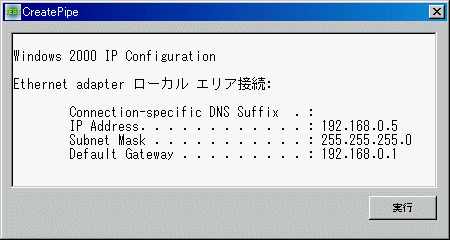 例では、ipconfig.exeのデータを取得しています。