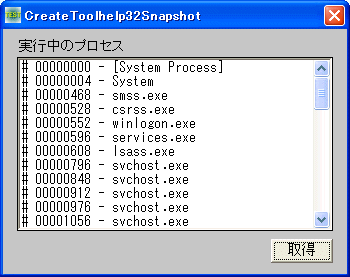 CreateToolhelp32Snapshot プロセスのスナップショットを取得