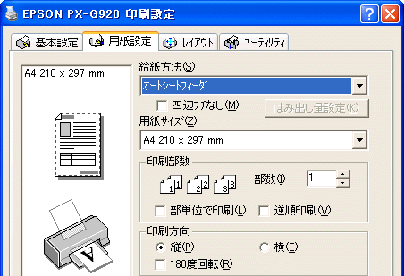 プリンタの印刷方向を設定します。