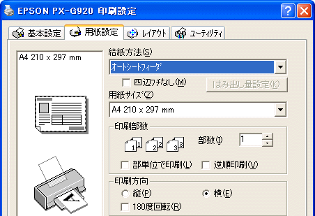 プリンタの印刷方向を設定 <TOP>