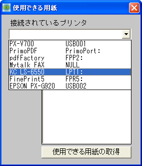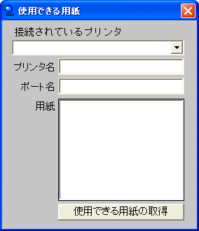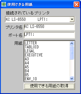 リスト行を選択し取得ボタンをクリックすることにより使用できる用紙の種類が表示されます。