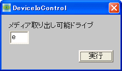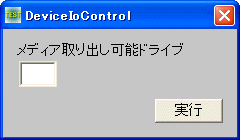 指定したデバイスドライバに直接制御コードを送ります。例では取り出し可能なドライブ名を入力し実行ボタンによりEJECTしています。