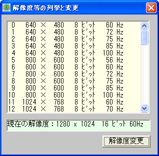 ChangeDisplaySettings 解像度等の変更(Windows3.5(1)以降、Windows95以降)
