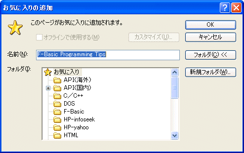 DoAddToFavDlg お気に入りに追加