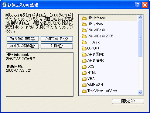 DoOrganizeFavDlg お気に入りの整理