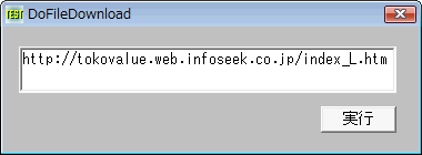 '================================================================ '= ファイルのダウンロード '= (DoFileDownload.bas) '================================================================ #include "Windows.bi" ' ファイルのダウンロード Declare Function Api_DoFileDownload& Lib "shdocvw" Alias "DoFileDownload" (ByVal lpszFile$) ' ANSI文字列をUnicode文字列に変換 Declare Function Api_MultiByteToWideChar& Lib "Kernel32" Alias "MultiByteToWideChar" (ByVal CodePage&, ByVal dwFlags&, ByVal lpMultiByteStr$, ByVal cchMultiByte&, ByVal lpWideCharStr$, ByVal cchWideChar&) #define CP_ACP 0 'ANSIコードページ #define CP_MACCP 2 'Macintoshコードページ #define CP_OEMCP 1 'OEMコードページ #define CP_SYMBOL 42 'シンボルコードページ(Windows2000・XP) #define CP_THREAD_ACP 3 '呼び出しスレッドのANSIコードページ(Windows2000・XP) #define CP_UTF7 65000 'UTF-7を使用して変換(Windows98・Me・NT4.0以降) #define CP_UTF8 65001 'UTF-8を使用して変換(Windows98・Me・NT4.0以降)これを指定した場合、dwFlagsパラメータは0 Var Shared Edit1 As Object Edit1.Attach GetDlgItem("Edit1") : Edit1.SetFontSize 14 '================================================================ '= '================================================================ Declare Sub Button1_on edecl () Sub Button1_on() Var Buff As String '元の文字列 Var wBuff As String '変換先文字列 Var wBufflen As Long '変換先文字数 Var Ret As Long Buff = String$(256, Chr$(0)) Buff = Edit1.GetWindowText wBuff = String$(256, Chr$(0)) '必要なバッファサイズを取得 wBufflen = Api_MultiByteToWideChar(CP_ACP, 0, Buff, -1, wBuff, 0) Ret = Api_MultiByteToWideChar(CP_ACP, 0, Buff, -1, wBuff, wBufflen) wBuff = Left$(wBuff, (wBufflen - 1) * 2) Ret = Api_DoFileDownload(wBuff) End Sub '================================================================ '= '================================================================ While 1 WaitEvent Wend Stop End