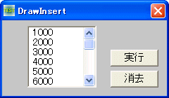 '= (DrawInsert.bas) '================================================================ #include "Windows.bi" ' インデックスで示された項目の前に挿入ガイドを表示 Declare Sub Api_DrawInsert Lib "comctl32" Alias "DrawInsert" (ByVal handParent&, ByVal hLB&, ByVal nItem&) Var Shared List1 As Object Var Shared Button1 As Object List1.Attach GetDlgItem("List1") : List1.SetFontSize 14 Button1.Attach GetDlgItem("Button1") : Button1.SetFontSize 14 '================================================================ '= '================================================================ Declare Sub MainForm_Start edecl () Sub MainForm_Start() For i = 1 To 20 List1.AddString Str$(i * 1000) Next End Sub '================================================================ '= '================================================================ Declare Sub Button1_on edecl () Sub Button1_on() Api_DrawInsert GethWnd, List1.GethWnd, List1.GetCursel End Sub '================================================================ '= '================================================================ Declare Sub Button2_on edecl () Sub Button2_on() Api_DrawInsert GethWnd, List1.GethWnd, -1 End Sub '================================================================ '= '================================================================ While 1 WaitEvent Wend Stop End