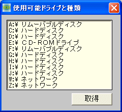 使用可能ドライブ一覧と種類の取得 <TOP>