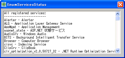 ' サービス制御マネージャ(Service Control Manager:SCM)の指定されたデータベース内のサービスを列挙