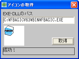 アイコンを取得するファイルパスをエディットボックスに入力し『取得』ボタンをクリックします。
