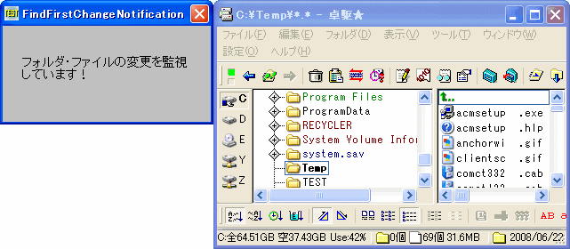 FindFirstChangeNotification ファイル変更通知オブジェクトのハンドルを作成