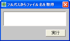 例では、EditBoxにファイルをドラッグ&ドロップしフルパス名を表示させ、「実行」ボタンクリックで抜き出したファイル名のみを表示させています。