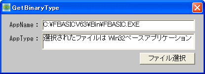 GetBinaryType 実行ファイルのタイプを取得表示します。