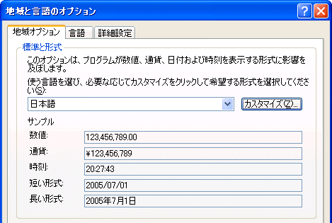 地域と言語のオプションで設定された書式(フォーマット)に準じます。