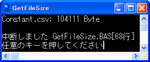 例では「Constant.csv」を指定してファイルサイズを取得しています。
