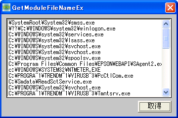 GetModuleFileNameEx ロードされている実行モジュールのフルパス名を取得