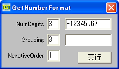 GetNumberFormat 指定した数字文字列を、指定したロケール用にカスタマイズされた数字文字列として書式化