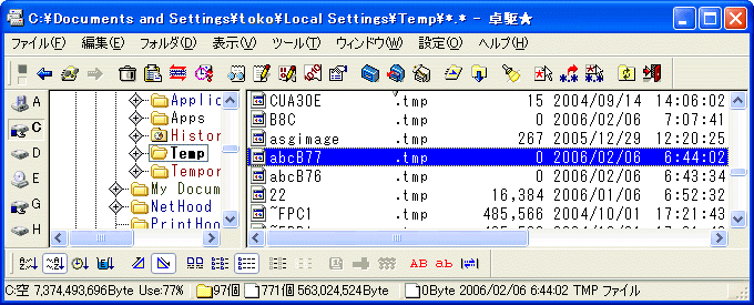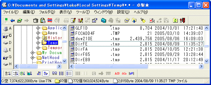 テンポラリファイルは、3文字までのプリフィクスと16進数のテンポラリ番号で表される。