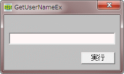 '================================================================ '= ユーザー名を取得 '= (GetUserNameEx.bas) '================================================================ #include "Windows.bi" #define NameSamCompatible 2 ' 呼び出し側スレッドと結び付いているユーザーなどのセキュリティプリンシパルの名前を取得 Declare Function Api_GetUserNameEx& Lib "secur32" Alias "GetUserNameExA" (ByVal NameFormat&, ByVal lpNameBuffer$, ByRef nSize&) Var Shared Text1 As Object Var Shared Button1 As Object Text1.Attach GetDlgItem("Text1") : Text1.SetFontSize 14 Button1.Attach GetDlgItem("Button1") : Button1.SetFontSize 14 '================================================================ '= '================================================================ Declare Sub Button1_on edecl () Sub Button1_on() Var Buffer As String Var Length As Long Buffer = String$(256, 0) Length = Len(Buffer) If Api_GetUserNameEx(NameSamCompatible, Buffer, Length) <> 0 Then Text1.SetWindowText "Username: " & Left$(Buffer, Length) Else Text1.SetWindowText "ユーザー名を取得できません!" End If End Sub '================================================================ '= '================================================================ While 1 WaitEvent Wend Stop End