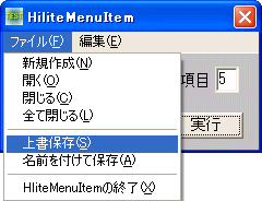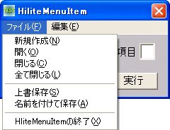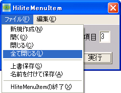 HiliteMenuItem 指定のメニュー項目を強調表示