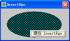 '= (InvertRgn.bas) '================================================================ #include "Windows.bi" ' 楕円形のリージョンを作成 Declare Function Api_CreateEllipticRgn& Lib "gdi32" Alias "CreateEllipticRgn" (ByVal nLeftRect&, ByVal nTopRect&, ByVal nRightRect&, ByVal nBottomRect&) ' 指定されたリージョン領域の色を反転 Declare Function Api_InvertRgn& Lib "gdi32" Alias "InvertRgn" (ByVal hDC&, ByVal hRgn&) ' ハッチパターンの論理ブラシを作成 Declare Function Api_CreateHatchBrush& Lib "gdi32" Alias "CreateHatchBrush" (ByVal nIndex&, ByVal crColor&) ' 指定のブラシで領域を塗りつぶす Declare Function Api_FillRgn& Lib "gdi32" Alias "FillRgn" (ByVal hDC&, ByVal hRgn&, ByVal hBrush&) ' ペン、ブラシ、フォント、ビットマップ、リージョン、パレットのいずれかの論理オブジェクトを削除し、そのオブジェクトに関連付けられていたすべてのシステムリソースを解放。オブジェクトを削除した後は、指定されたハンドルは無効になる Declare Function Api_DeleteObject& Lib "gdi32" Alias "DeleteObject" (ByVal hObject&) ' 指定されたウィンドウのクライアント領域または画面全体を表すディスプレイデバイスコンテキストのハンドルを取得 Declare Function Api_GetDC& Lib "user32" Alias "GetDC" (ByVal hWnd&) ' デバイスコンテキストを解放 Declare Function Api_ReleaseDC& Lib "user32" Alias "ReleaseDC" (ByVal hWnd&, ByVal hDC&) #define HS_DIAGCROSS 5 '45度のクロスハッチ Var Shared Button1 As Object Button1.Attach GetDlgItem("Button1") : Button1.SetFontSize 14 Var Shared hDC As Long Var Shared FG As Integer '================================================================ '= '================================================================ Declare Sub MainForm_Start edecl () Sub MainForm_Start() Var hRgn As Long Var hBr As Long Var Ret As Long FG = 0 Button1.SetWindowText "現在 Normal" hDC = Api_GetDC(GethWnd) hRgn = Api_CreateEllipticRgn(20, 10, 210, 100) hBr = Api_CreateHatchBrush(HS_DIAGCROSS, RGB(255, 0, 0)) Ret = Api_FillRgn(hDC, hRgn, hBr) End Sub '================================================================ '= '================================================================ Declare Sub Button1_on edecl () Sub Button1_on() Var hRgn As Long Var Ret As Long FG = not FG If FG = 0 Then Button1.SetWindowText "現在 Normal" Else Button1.SetWindowText "現在 InvertRgn" End If hRgn = Api_CreateEllipticRgn(20, 10, 210, 100) Ret = Api_InvertRgn(hDC, hRgn) Ret = Api_DeleteObject(hRgn) End Sub '================================================================ '= '================================================================ Declare Sub MainForm_QueryClose edecl () Sub MainForm_QueryClose() Var Ret As Long Ret = Api_ReleaseDC(GethWnd, hDC) End Sub '================================================================ '= '================================================================ While 1 WaitEvent Wend Stop End