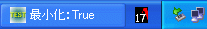 【OK】をクリックすると、フォームが最小化されていないのでメニューバーに【最小化:False】と表示されます。アイコン化ボタンをクリックするとタスクバー上で【最小化:True】と表示されます。