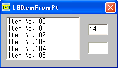 LBItemFromPt 指定された点にある項目のインデックスを取得