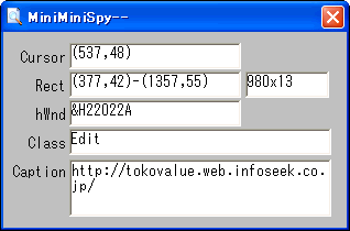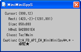 ウインドウクラスの情報を取得します。名付けて MiniMiniSpy--(かくいう私は、本物のSpy++を拝んだことがありません(^^;)