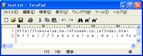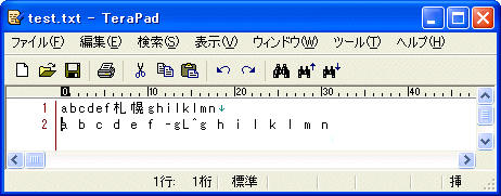VisualBasicでのStrConv(ANSI文字列, vbUnicode)をAPIで実行します。保存された文字列をTeraPadで読み込み表示させています。