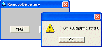 左:C:\に_ABというディレクトリを作成します。 右:RemoveDirectoryを実行(空なので削除成功)
