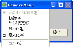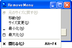 RemoveMenu システムメニューの削除