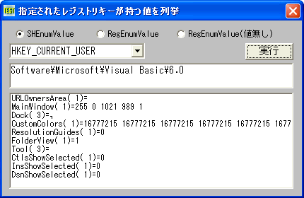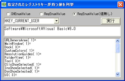 RegEnumValue 指定されたレジストリキーが持つ値を列挙