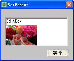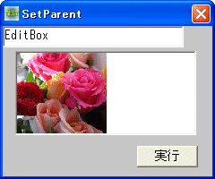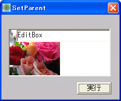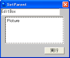 例ではPicture1を親、Edit1を子としています。「実行ボタン」によりEdit1をPicture1の中に入れています。