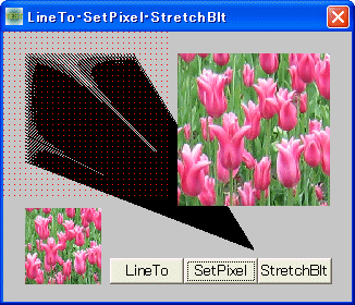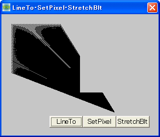 左:LineToで直線を描画 右:SetPixelで点を描画