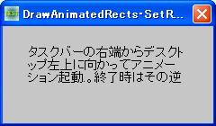起動時は、タスクバー右端から画面左上に向かってアニメーション起動し、終了時はタスクバー右端に向かってアニメーション終了します。