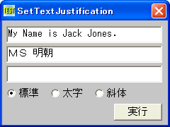 SetTextJustification システムがテキスト文字列内のブレーク文字に追加する間隔の量を指定
