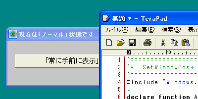 SetWindowText "現在は「常に手前に表示」状態です"