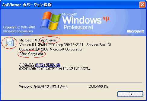第三引数:Copyright (C) 1981-2001 Microsoft Corporation の後に続く文字列