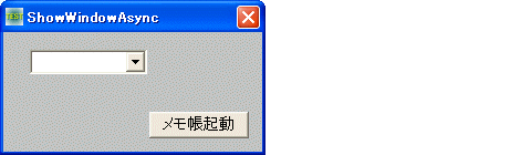 '================================================================ '= 別プロセスのウィンドウを表示・非表示 '= (ShowWindowAsync.bas) '================================================================ #include "Windows.bi" ' クラス名またはキャプションを与えてウィンドウのハンドルを取得 Declare Function Api_FindWindow& Lib "user32" Alias "FindWindowA" (ByVal lpClassName$, ByVal lpWindowName$) ' 別のスレッドによって作成されたウィンドウの表示状態を設定 Declare Function Api_ShowWindowAsync& Lib "user32" Alias "ShowWindowAsync" (ByVal hWnd&, ByVal nCmdShow&) #define SW_HIDE 0 '指定のウィンドウを非表示にし他のウィンドウをアクティブ化 #define SW_SHOW 5 'ウィンドウをアクティブ化し現在の位置とサイズで表示 Var Shared Combo1 As Object Var Shared Button1 As Object Combo1.Attach GetDlgItem("Combo1") : Combo1.SetFontSize 14 Button1.Attach GetDlgItem("Button1") : Button1.SetFontSize 14 '================================================================ '= '================================================================ Declare Sub MainForm_Start edecl () Sub MainForm_Start() Combo1.AddString "表示" Combo1.AddString "非表示" End Sub '================================================================ '= '================================================================ Declare Sub Combo1_Change edecl () Sub Combo1_Change() Var ClassName As String Var WinHandle As Long Var sw As Long Var Ret As Long 'クラス名でウィンドウハンドルを取得 ClassName = "Notepad" WinHandle = Api_FindWindow(ClassName, ByVal 0) 'ウィンドウハンドルを取得できたときは If WinHandle <> 0 Then If Combo1.GetCursel <> 0 Then sw = SW_HIDE Else sw = SW_SHOW 'ウィンドウの表示状態を設定 Ret = Api_ShowWindowAsync(WinHandle, sw) End If End Sub '================================================================ '= '================================================================ Declare Sub Button1_on edecl () Sub Button1_on() 'コマンドボタンを無効に設定 Button1.EnableWindow 0 'メモ帳を起動 Shell "Notepad.exe", , 5 End Sub '================================================================ '= '================================================================ While 1 WaitEvent Wend Stop End