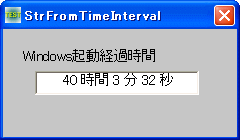 Windowsを起動してからの経過時間を取得し、文字列に変換表示します。