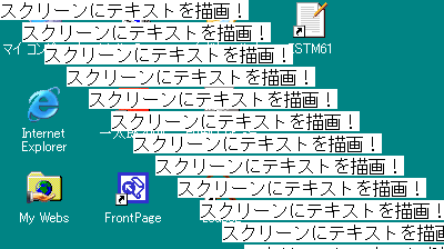 スクリーン座標、フォーム内の指定位置に文字列を描画します。
