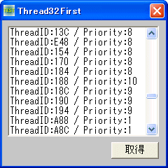 Thread32First 最初のスレッド情報を取得