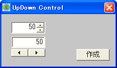 アップダウンコントロールを作成します。CreateUpDownControlおよびCreateWindowExでも作成できますが、前者のほうが簡単です。